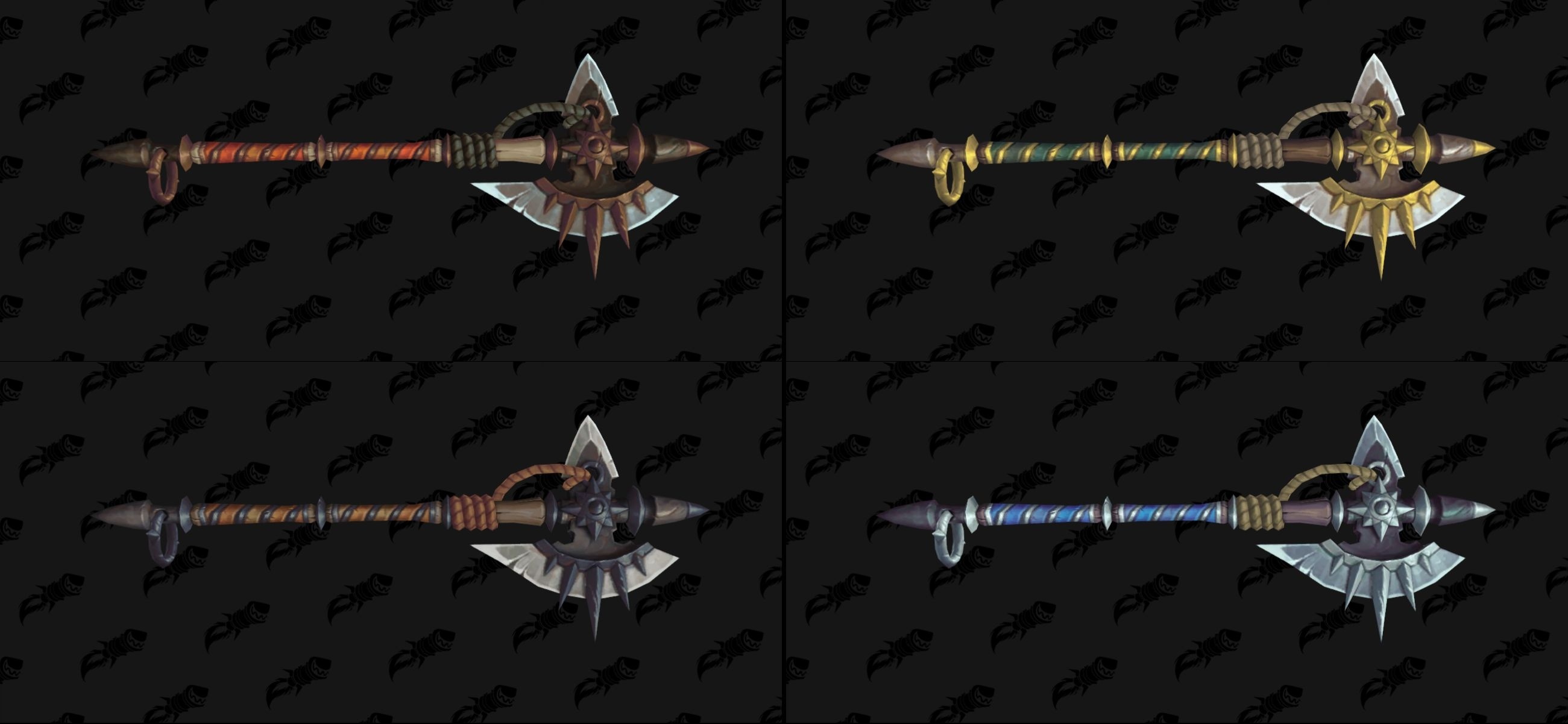 So haben wir zum einen das noch fehlende Leder-Set für die Dungeons von Zandalar. Ebenfalls für Leder-Träger gibt es eine Vorschau auf die Ausrüstung der Kriegsfronten der Horde, die sich in drei unterschiedliche Tiers aufteilt. Außerdem haben die Dataminer noch ein paar weitere neue Waffen aus unterschiedlichen Quellen gefunden. In unserer großen Übersicht könnt ihr euch die gesamte Palette an neuen Gegenständen aus Battle for Azeroth anschauen: Transmog-Übersicht und Kriegsfronten-Übersicht. Folgend nur die erwähnten Neuheiten aus dem letzten Beta Build.