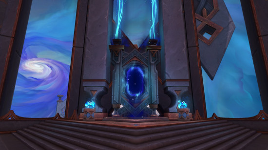 Klickt man auf ein solches Portal, steigt der eigene Charakter auf einen Verzauberten Ewigwyrm und fliegt dann zum Transportationsportal am Himmel von Oribos. Sobald der Wyrm hindurchfliegt, beginnt der Spaß. Ehrlich gesagt ist es schwer dies mit Worten zu beschreiben, weshalb ihr es euch am besten einfach im Video anschauen solltet. Das System ist allerdings noch nicht fertig, denn am Ende steht man nicht am gewünschten Zielort, sondern wieder in Oribos. Doch das Ziel ist natürlich, dass eine Schnellreise ohne Ladebildschirm von Oribos aus möglich ist.